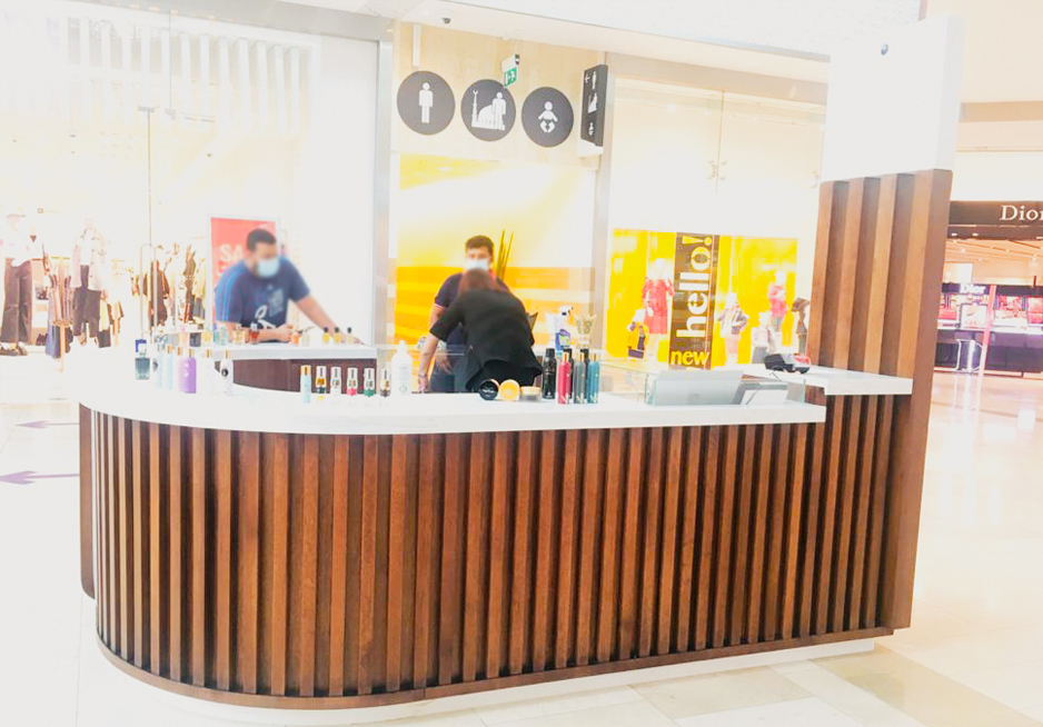 A Customized Indoor retail mall kiosk for a luxurious Arabic perfume